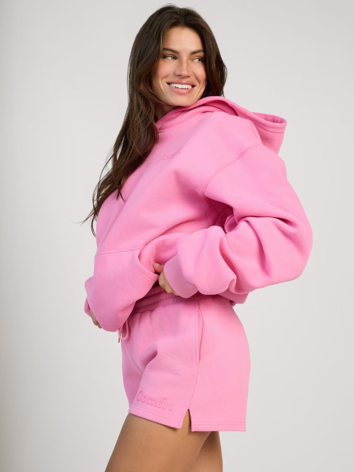 i love this hoodie!! i purchased the matching shorts to go with this hoodie and it’s the perfect bundle for a chill summer night. 100% recommend these products!!