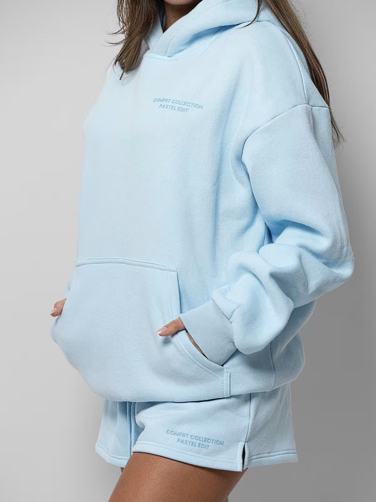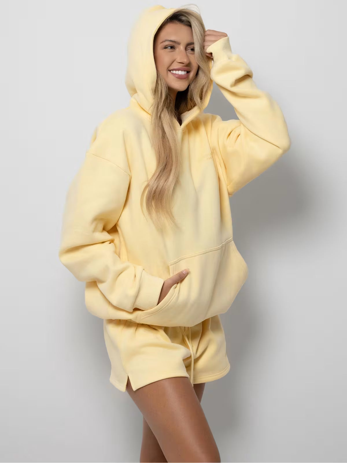 i love this hoodie!! i purchased the matching shorts to go with this hoodie and it’s the perfect bundle for a chill summer night. 100% recommend these products!!